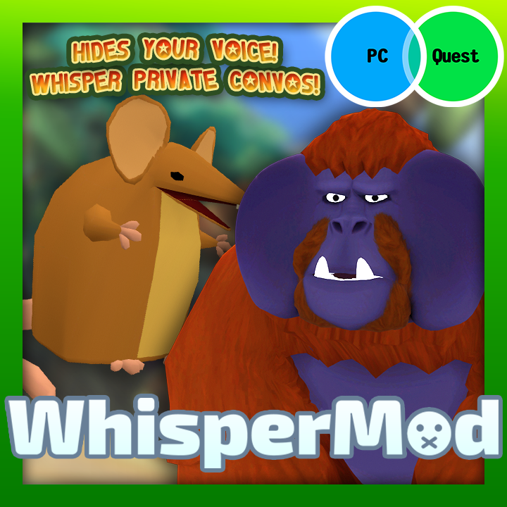 WhisperMod is a gameplay and roleplay gimmick prefab that hides your voice in-game, allowing you to have private conversations with friends by making direct contact with their avatar capsule. Whether you're plotting something sneaky or just want share your deep secrets, WhisperMod gives you full control over how and when you're heard.